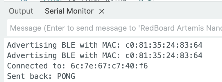The Artemis board MAC address was obtained from the Serial Monitor: