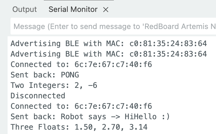 - Artemis board acts as the peripheral (server), advertising BLE services and listening for commands
