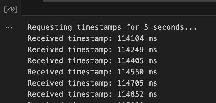 Method: Sent GET_TIME_MILLIS commands repeatedly for 5 seconds while notification handler recorded all responses and their arrival times.